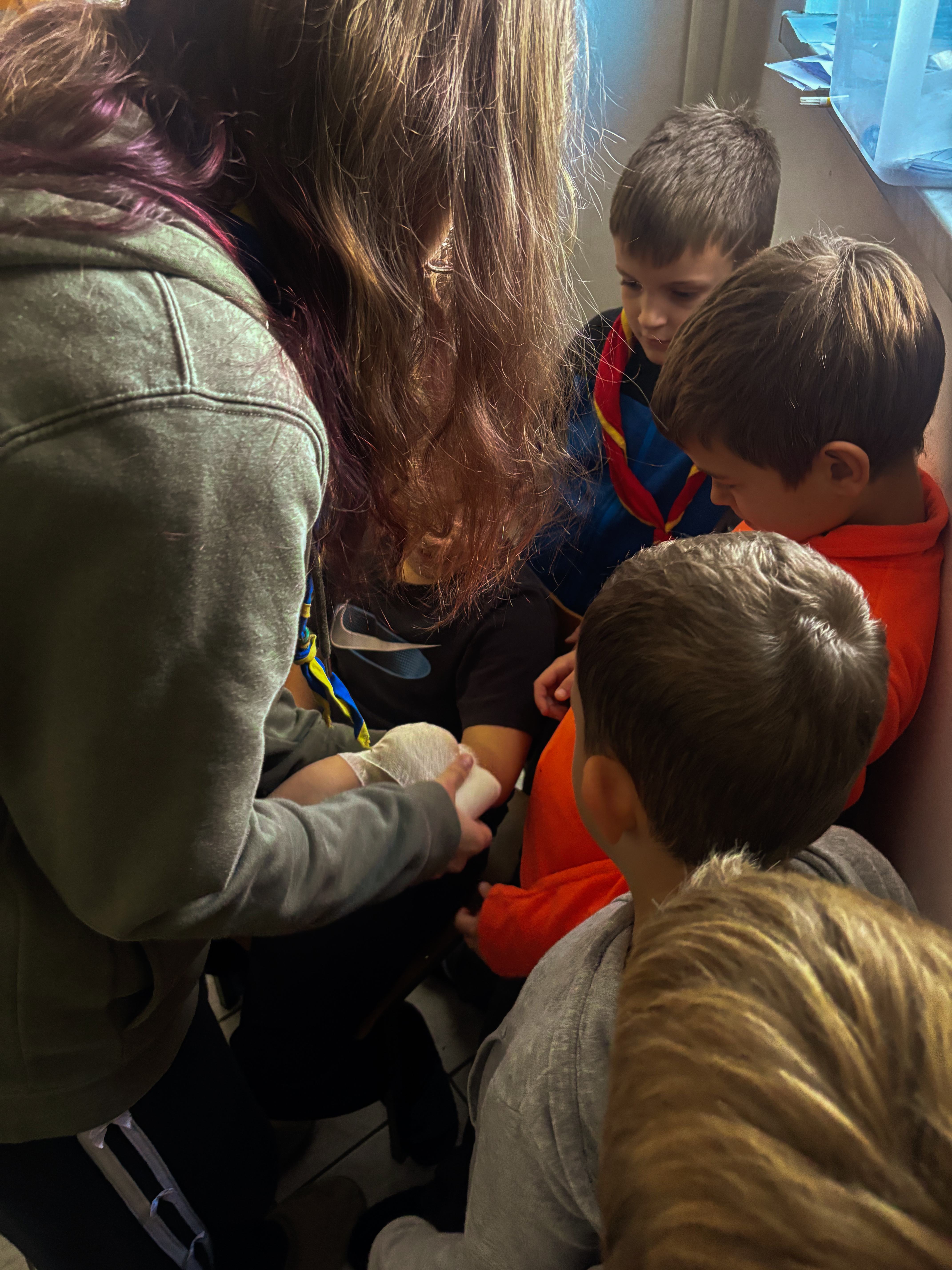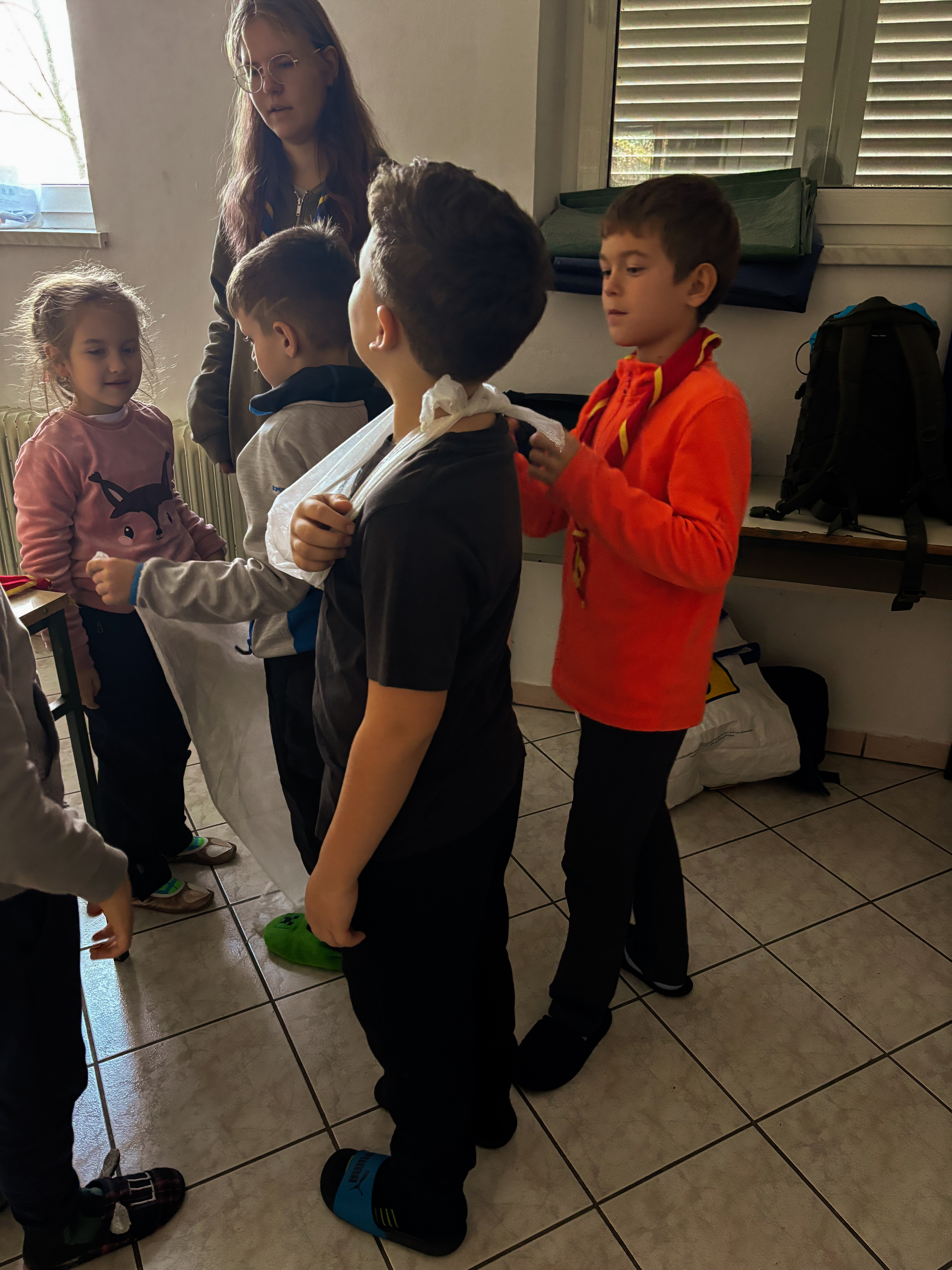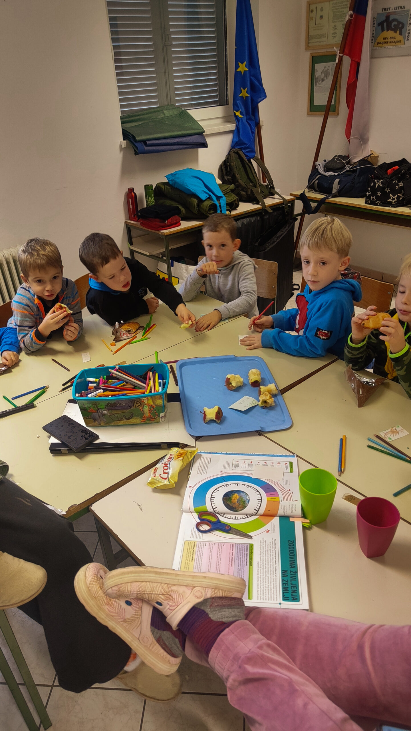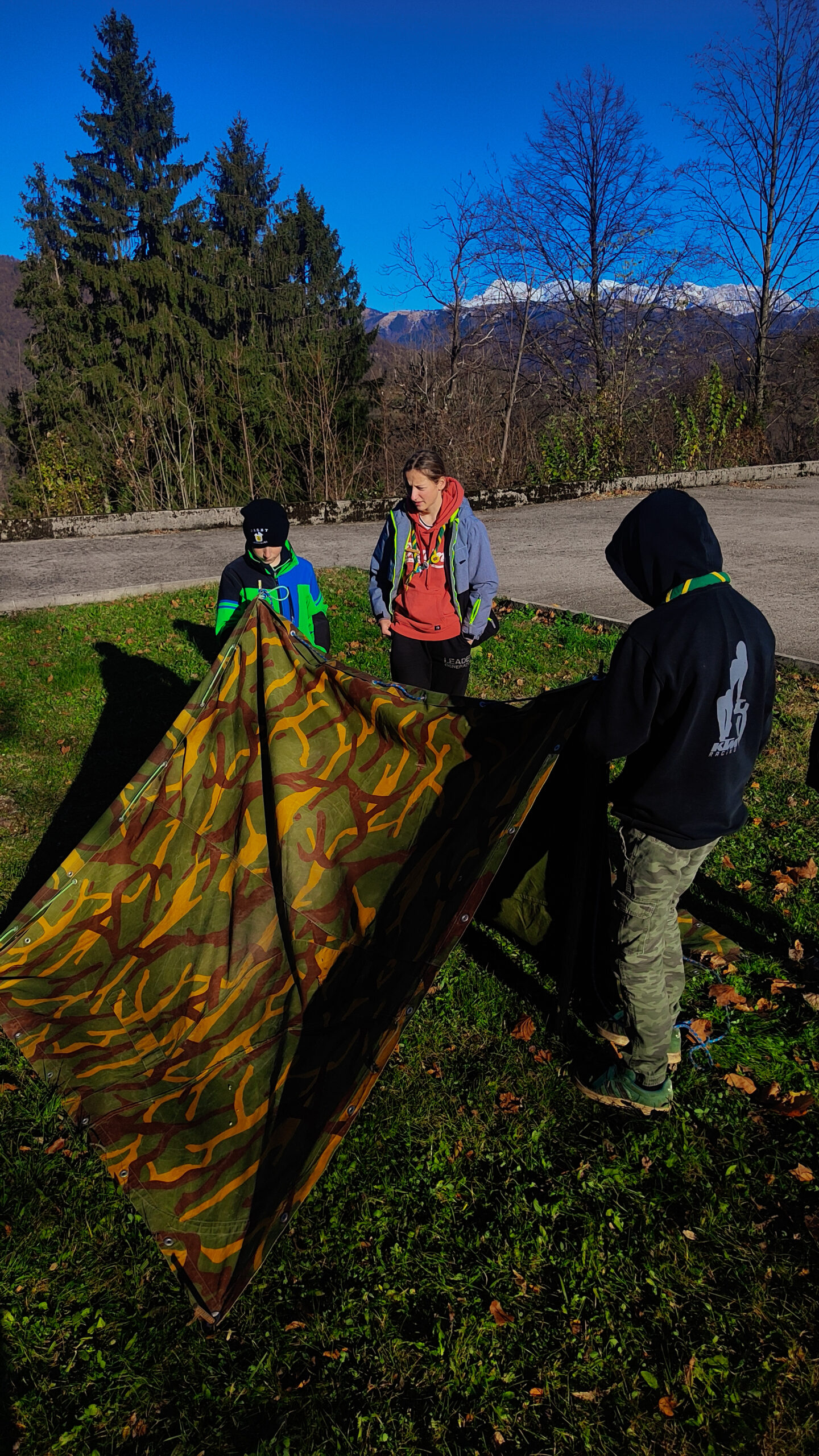 Med 21. in 23. novembrom je v domu veteranov na Kambreškem potekalo jesenovanje. V petek smo naše najstarejše otroke (GG-je) pričakali s praktično vajo iz prve pomoči, kjer so morali oskrbeti različne poškodbe. Naslednji dan so se nam pridružili tudi mlajši člani (MČ-ji), ki so skupaj s svojimi vodniki opravljali raznolike dejavnosti. Imeli so lov na lisico, spoznavanje dinozavrov, pionirstvo in še mnogo drugih zabavnih aktivnosti. GG-ji so tudi obiskali gospo Jožico, ki nam vedno prijazno odpre svoja vrata. Postavili so ogenj v ognjišču, ga prižgali s kresilom in si skuhali čaj. Zvečer so se otroci, ki so prespali, udeležili večernega programa, kjer so se v mešanih skupinah borili za 1. mesto. Zvezdice, ki so jih zbirali ves dan so jim tu prišle zelo prav, saj so v zameno za njih opravljali dejavnosti za točke. Tudi v nedeljo so nadaljevali z dejavnostmi in utrjevali svoje taborniške veščine. Na koncu dopoldneva so se tudi vsi skupaj pomerili v igri napada na tabor, kar je poskrbelo za prijeten zaključek jesenovanja. Polni novega znanja in z nasmehom na obrazu so se otroci malo po kosilu odpravili domov.